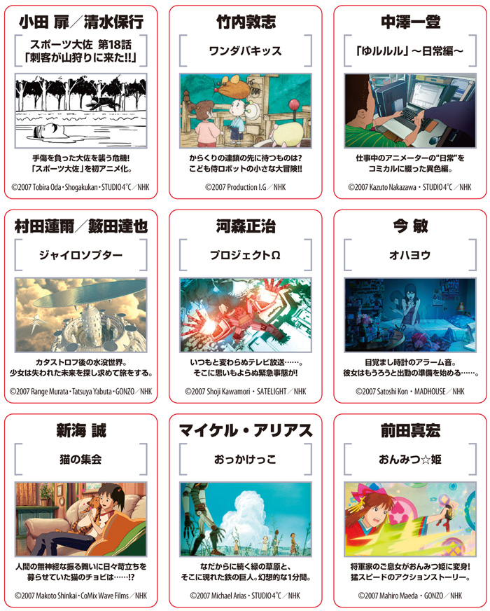 小林治監督作品「三茶ブルース」/新海誠監督作品「猫の集会」/今敏監督作品「オハヨウ」