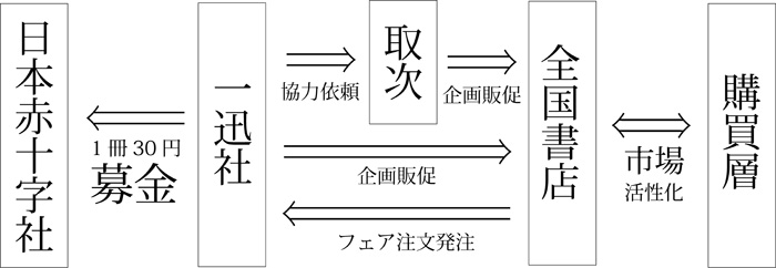 尚、フェア期間中、書店様より注文を1冊受け付けるごとに30円を日本赤十字社を通して被災地への義援金として募金する予定です。