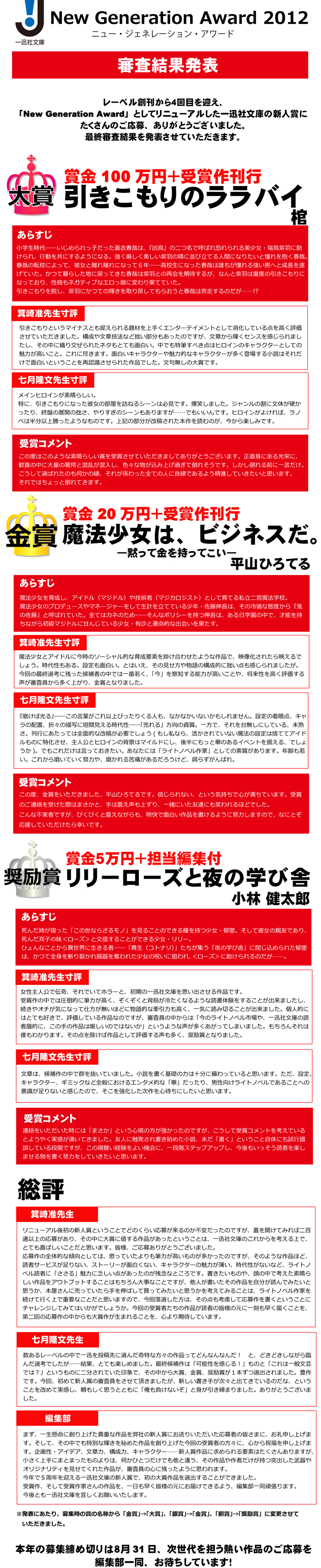 「一迅社文庫NewGenerationAward2012」 審査結果発表