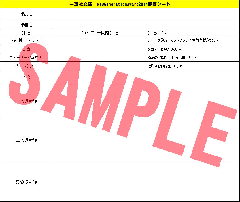 評価シートの見本です。内容・レイアウトは変更になる場合があります。